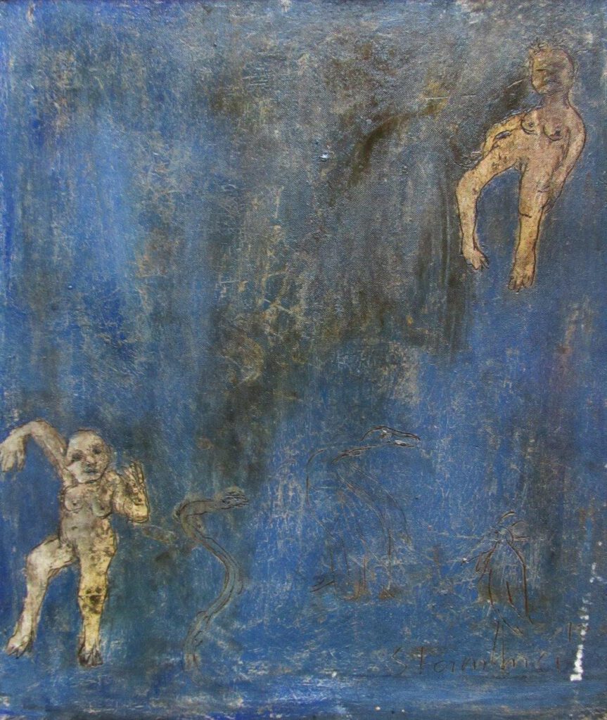 The series About Life and Death (2013) marks a turning point in Reinhard Stammer’s artistic journey.For the first time, his gaze turns fully inward — away from external form toward the existential core of human experience. These paintings are raw and restrained, dominated byearthy greys and visceral reds. Fragments of bodies, skulls, shadows, and abstract signs appear like memories of what has passed — and traces of what remains.The painting process itself is both impulsive and meditative: layers of pigment are built up, scraped away, and reworked.Each canvas bears the marks of its own becoming. Within the tension between vitality and decay, between fragility and persistence, Stammer achieves a new, existential clarity.About Life and Death is not a series about death — it is a meditation on life, its fragility, and its enduring dignity. A few years ago, he exhibited a series of paintings in Cologne –hung according to his own feelings, without thinking about any deeper order. A visitor approached him and expressed interest in purchasing a single work. But the artist insistedon selling the series only as a complete whole. The visitor then pointed out something that had escaped him until then: the series unconsciously followed a metaphysical order.It began with black – symbolising the material world – and ended in violet, the colour of infinity. In between, it traced the path of human beings towards spiritual enlightenment.At that moment, the artist realised what he had created without consciously intending to. Within two hours, he had captured human existence intuitively and beyond rationalplanning. This realisation hit him like a blow, both fascinating and disarmingly honest: the truth of his work was only revealed to him through the eyes of a stranger.Einzelausstellungen